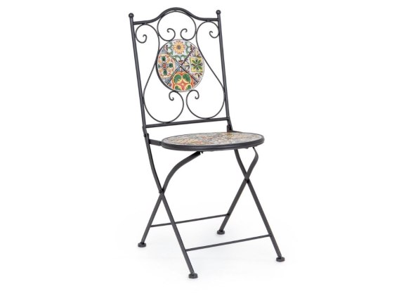 Krzesło posiada przepiękne ceramiczne wzory inspirowane grecką wyspą Naxos, jej malowniczą architekturą i zapierającym dech krajobrazem, eleganckie, geometryczne motywy nawiązują do tradycyjnych elementów cykladzkiego designu, a zarazem łączą się z naturalnym pięknem śródziemnomorskiej estetyki, tworząc subtelną harmonię.