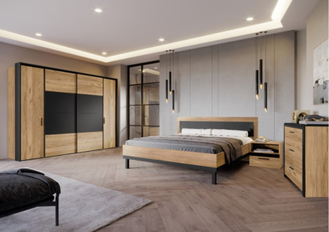Przytulnie i elegancko. Takie wrażenie sprawia kolekcja mebli DALATE w kontrastujących dekorach Dębu Catania i matowej głębokiej czerni.