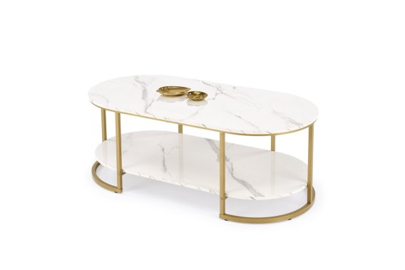 Wymiary: 120/60/46 cm, materiał: MDF okleinowany / stal malowana proszkowo, kolor: biały marmur - złoty