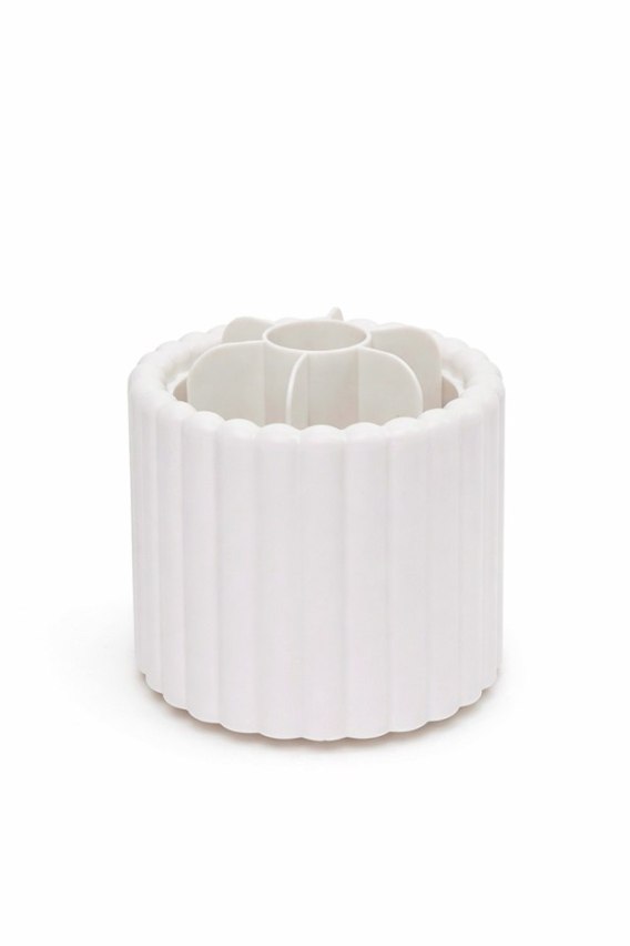 Wykonany z trwałego białego tworzywa sztucznego, wyróżnia się subtelną, ryflowaną powierzchnią o nowoczesnym charakterze.