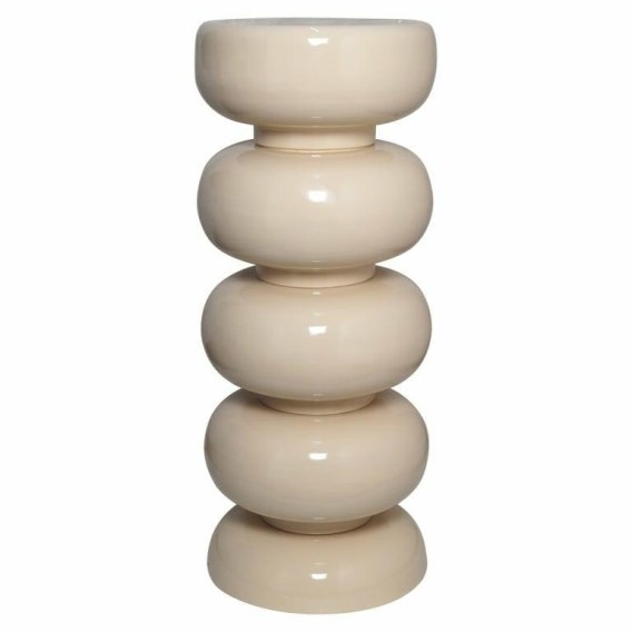 Ten piękny, wysoki beżowy stolik to niezwykle oryginalna dekoracja, która wyróżnia się nowoczesnym, zaokrąglonym kształtem.