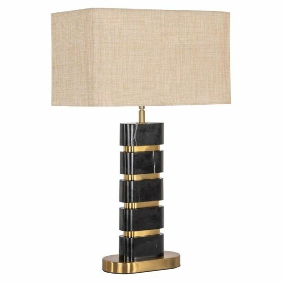 Złote akcenty z mosiądzu, umieszczone między segmentami marmuru, podkreślają ekskluzywny charakter lampy.