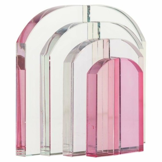 Piękne, subtelne podpórki wykonano ze szkła w dwóch odcieniach: przezroczystym i różowym.