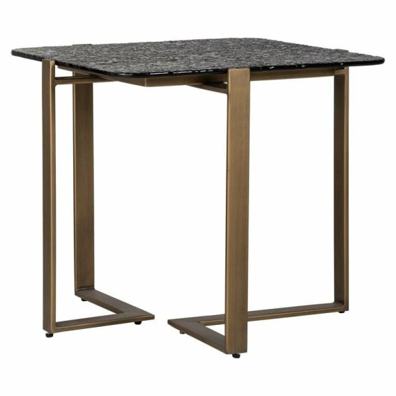 Stworzony został z ciemnego, zdobionego szklanego blatu i oparty na metalowej złotej podstawie.