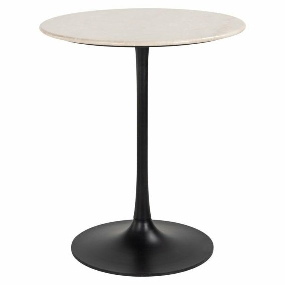 Stolik Tavolo charakteryzuje się okrągłym blatem wykonanym z jasnego marmuru, co dodaje mu luksusowego wyglądu.