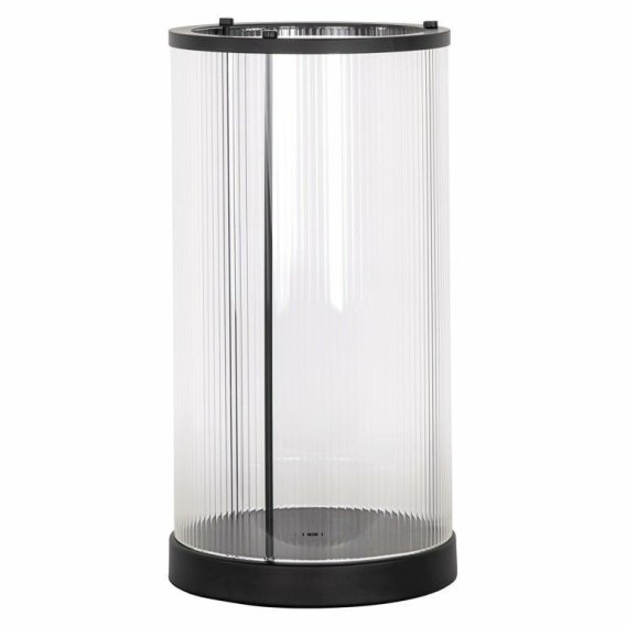 Prosty, czarny, cylindryczny kształt ze szklanym wykończeniem dodaje minimalistycznego uroku, doskonale pasując do współczesnych aranżacji.