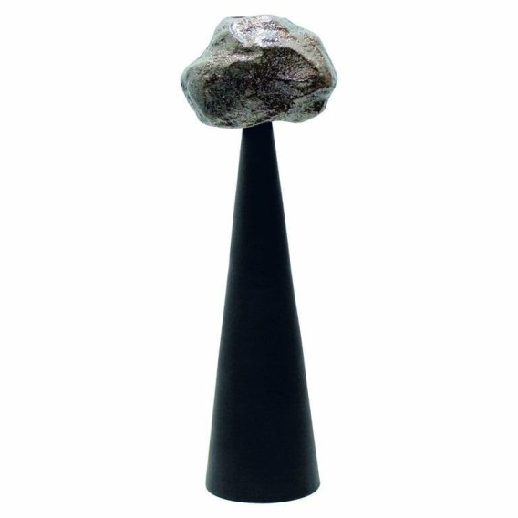 Jego nowoczesna forma składa się z gładkiej, stożkowej podstawy, na której osadzona jest rzeźbiarska, nieregularna bryła przypominająca naturalny kamień lub meteoryt.