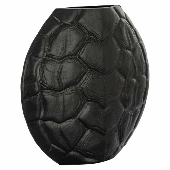 Wazon Ines, wykonany z aluminium, charakteryzuje się unikalnym, organicznym wzorem przypominającym skorupę żółwia.